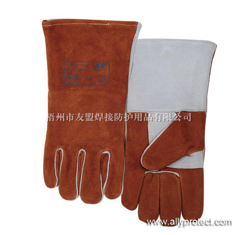 • 產(chǎn)品描述: [ AP ]咖啡色牛二層皮全皮電焊手套,斜耐磨掌連指托層和加厚內(nèi)里設(shè)計(jì),適用于焊接、切割及搬運(yùn)等用途。